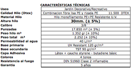 Aspecto tan atractivo como el césped natural pero todo el año. Césped como recién instalado durante años sin apenas mantenimiento.